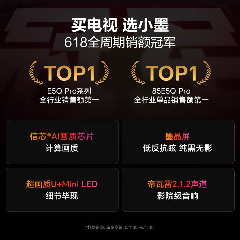 海信小墨E5Q Pro正在抗反光时间和音质展现上颇具上风,适合寻找高画质的用户。